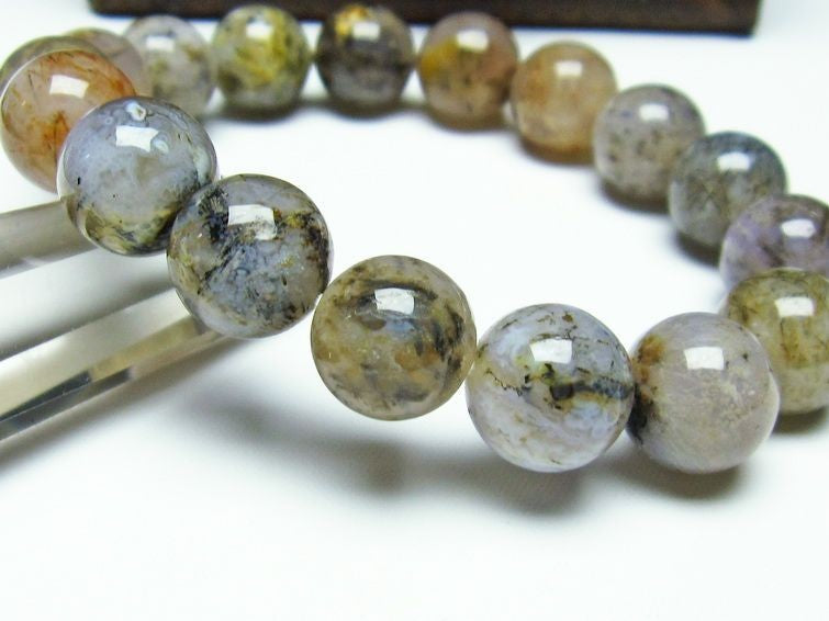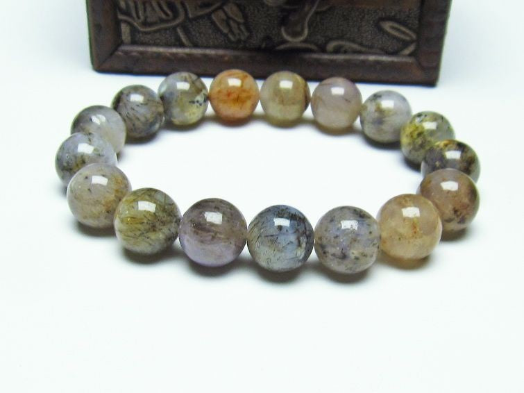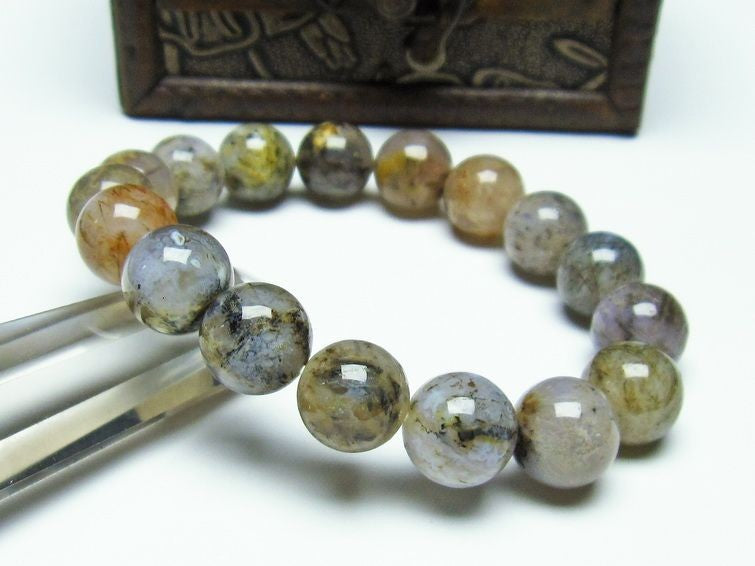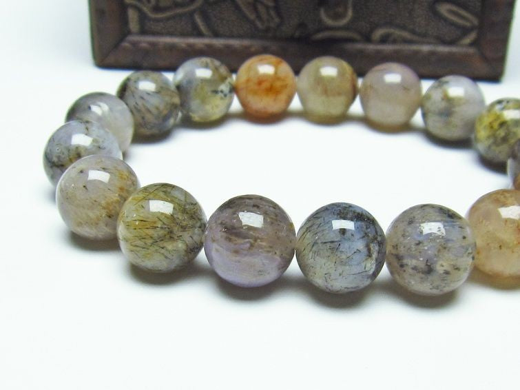 - ルチルインアゲート ブレスレット 針入り瑪瑙 ブレス 12mm