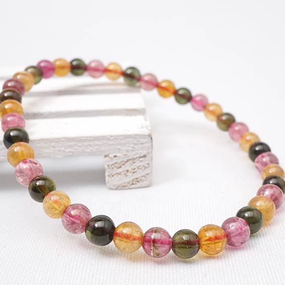 ミックスカラー トルマリン ブレスレット 5mm 一点物 111-1291