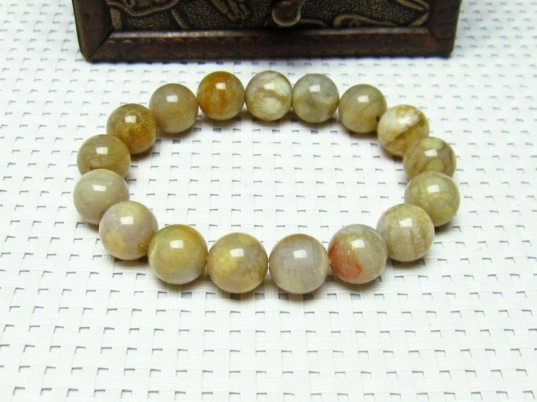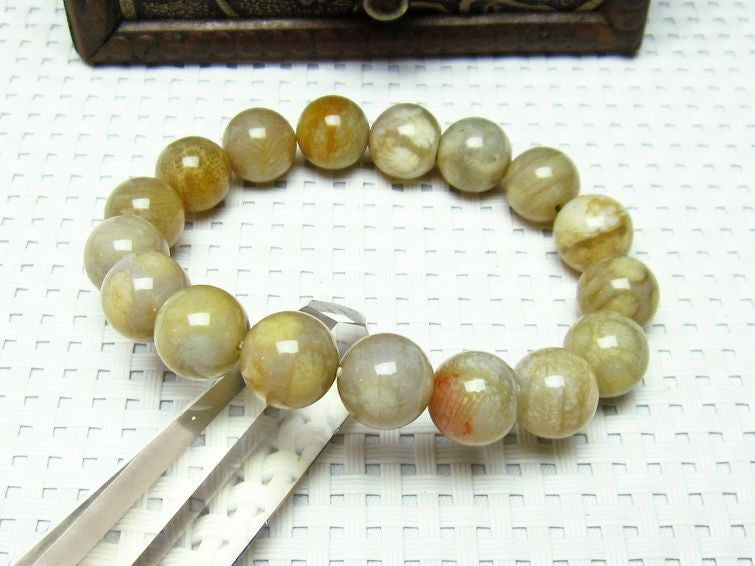 珊瑚 フォッシルコーラル ブレスレット 11mm 一点物 メール便可 [M便 1/10] 111-1420