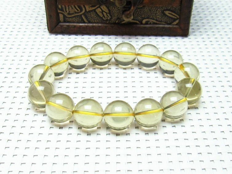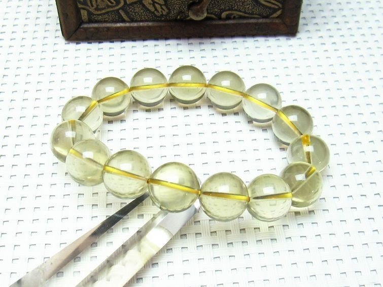 ミルキークォーツ イエロー ブレスレット 14mm 一点物 111-1710