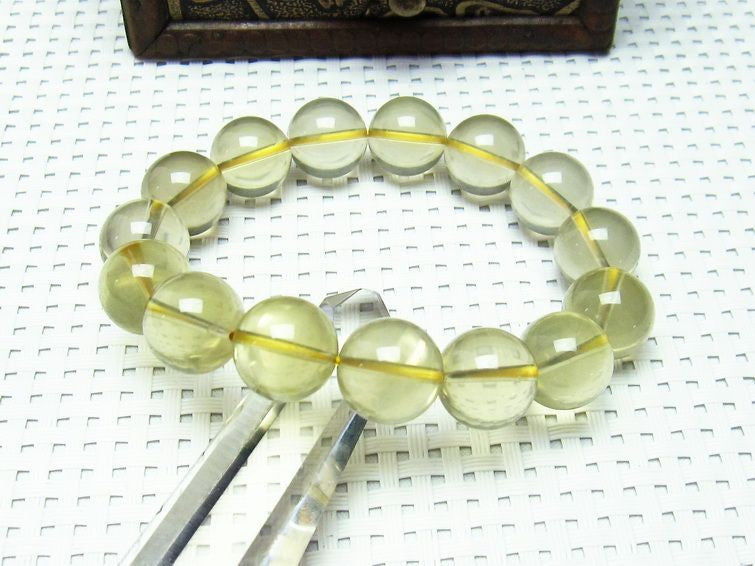 ミルキークォーツ イエロー ブレスレット 14mm 一点物 111-1722