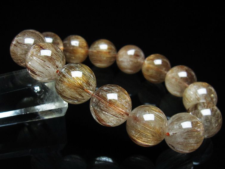 ゴールド タイチンルチルクォーツ ブレスレット 14mm 一点物 211-2417