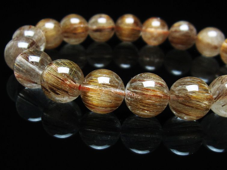ゴールド タイチンルチルクォーツ ブレスレット 14mm 一点物 211-2417