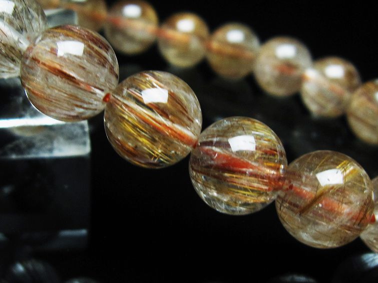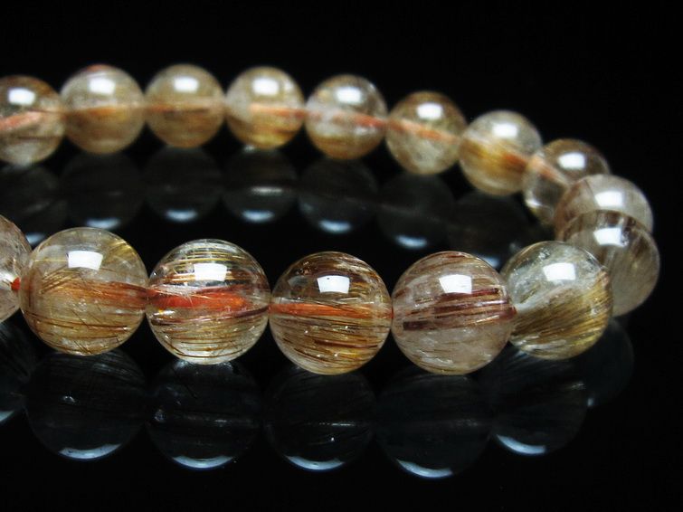 ゴールド タイチンルチルクォーツ ブレスレット 14mm 一点物 211-2417