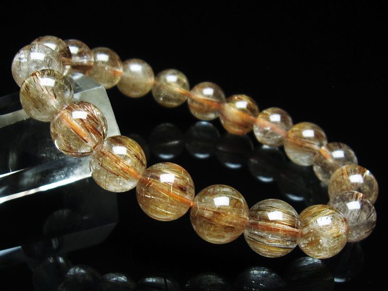 ゴールド タイチンルチルクォーツ ブレスレット 14mm 一点物 211-2417