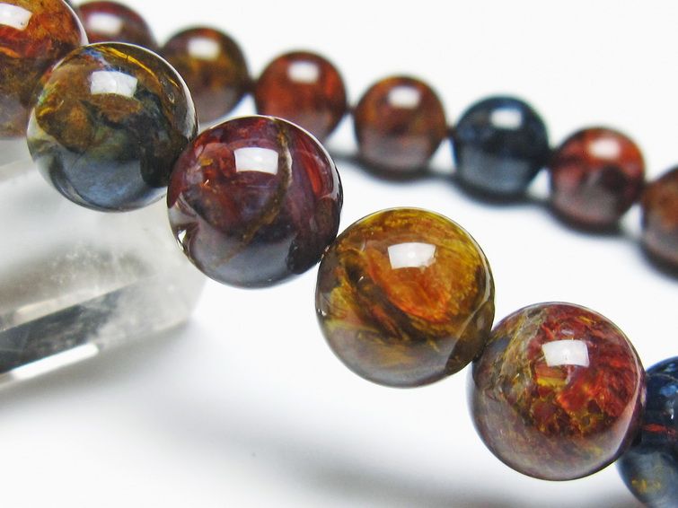 ピーターサイトは、地殻変動により砕けたタイガーアイやブルータイガーアイ(ホークスアイ)が、石英(クォーツ)によって再結晶化した鉱物です。タイガーアイの様な繊維状のキャッツアイは見られませんが、渦巻いたような独特のマーブル模様はまるで油絵や絵画の様で独特の魅力を放っています。