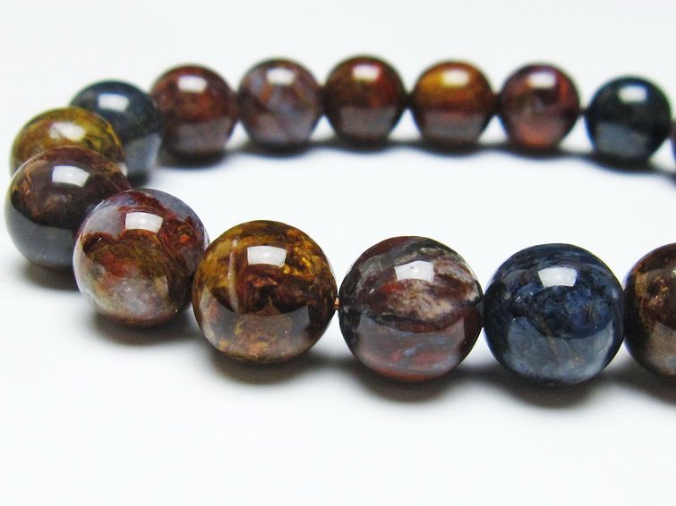 ピーターサイトは、地殻変動により砕けたタイガーアイやブルータイガーアイ(ホークスアイ)が、石英(クォーツ)によって再結晶化した鉱物です。タイガーアイの様な繊維状のキャッツアイは見られませんが、渦巻いたような独特のマーブル模様はまるで油絵や絵画の様で独特の魅力を放っています。