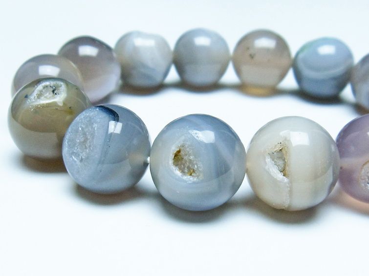 豊富なカラーと縞模様が特徴的なパワーストーンで、オニキスなどもアゲートの一種です。アゲートは石英の結晶が集まってできた石で、透明感があり縞模様がないものを「カルセドニー」と呼び、縞模様があるものを「アゲート」と呼んで区別しています。