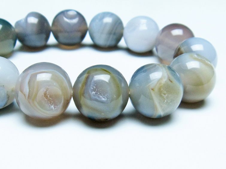 豊富なカラーと縞模様が特徴的なパワーストーンで、オニキスなどもアゲートの一種です。アゲートは石英の結晶が集まってできた石で、透明感があり縞模様がないものを「カルセドニー」と呼び、縞模様があるものを「アゲート」と呼んで区別しています。