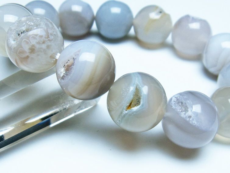 豊富なカラーと縞模様が特徴的なパワーストーンで、オニキスなどもアゲートの一種です。アゲートは石英の結晶が集まってできた石で、透明感があり縞模様がないものを「カルセドニー」と呼び、縞模様があるものを「アゲート」と呼んで区別しています。