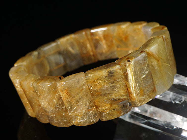 ゴールド タイチンルチルクォーツ ブレスレット 14mm 一点物 211-2417