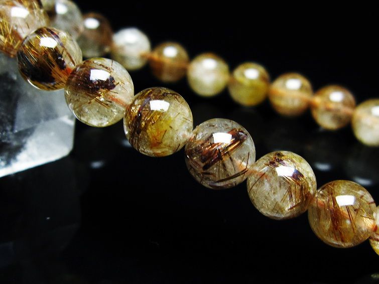 ゴールド タイチンルチルクォーツ ブレスレット 14mm 一点物 211-2417