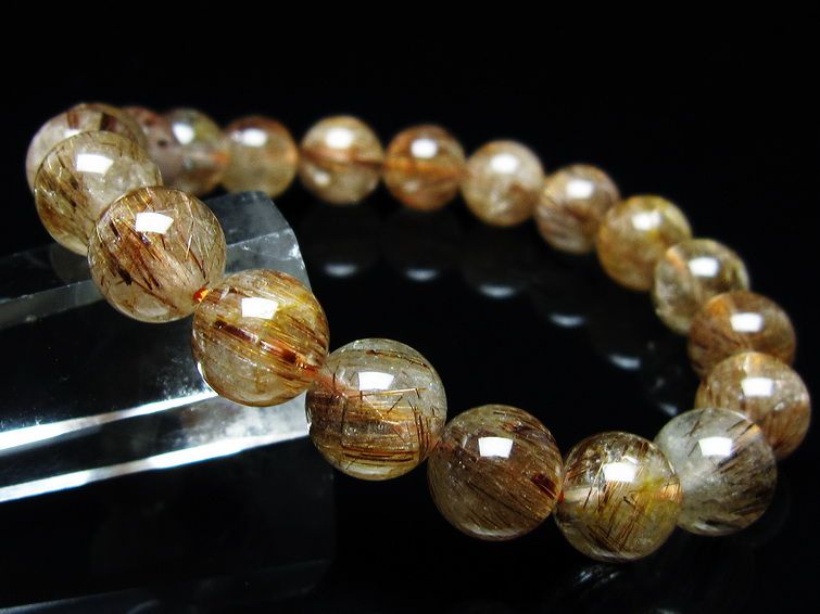 ゴールド タイチンルチルクォーツ ブレスレット 14mm 一点物 211-2417