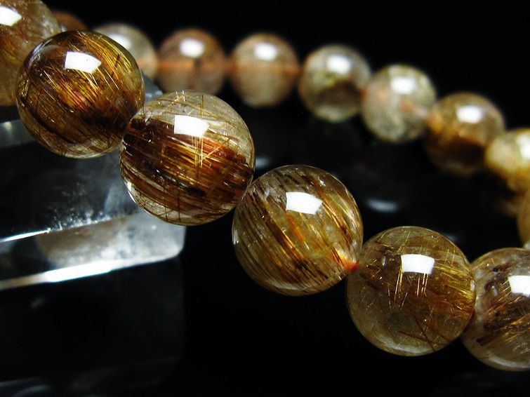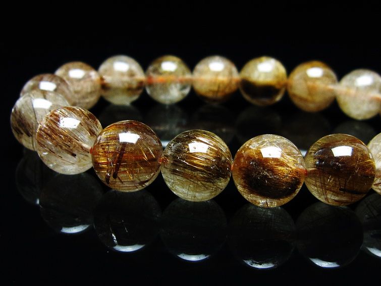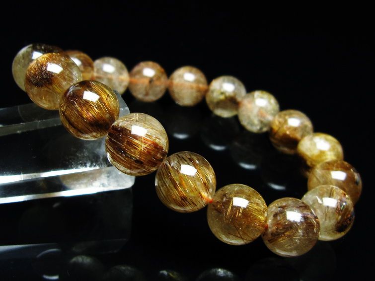 ゴールド タイチンルチルクォーツ ブレスレット 14mm 一点物 211-2417