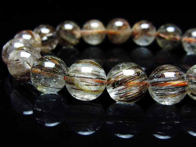 ゴールド タイチンルチルクォーツ ブレスレット 14mm 一点物 211-2417