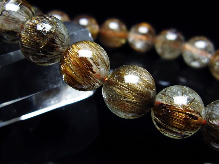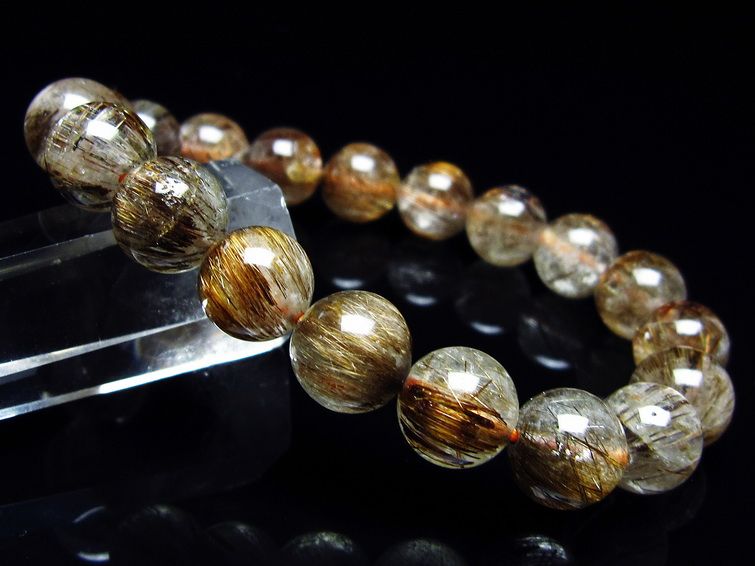 ゴールド タイチンルチルクォーツ ブレスレット 14mm 一点物 211-2417