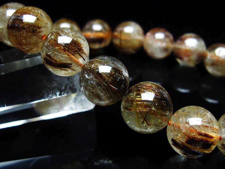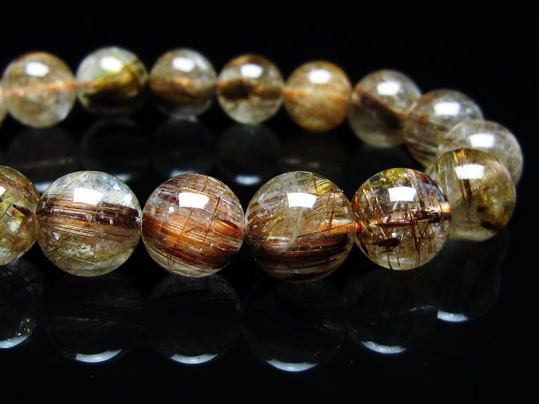 ゴールド タイチンルチルクォーツ ブレスレット 14mm 一点物 211-2417