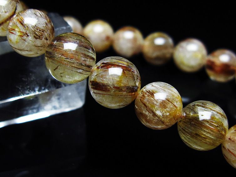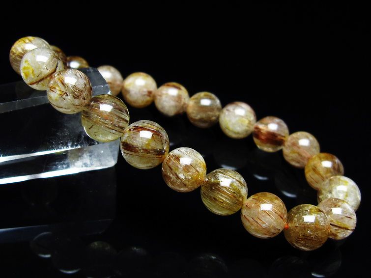 ゴールド タイチンルチルクォーツ ブレスレット 14mm 一点物 211-2417