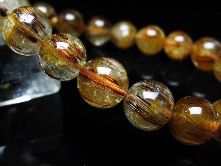 ゴールド タイチンルチルクォーツ ブレスレット 14mm 一点物 211-2417
