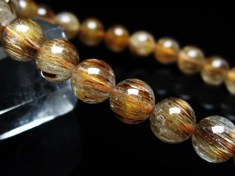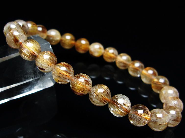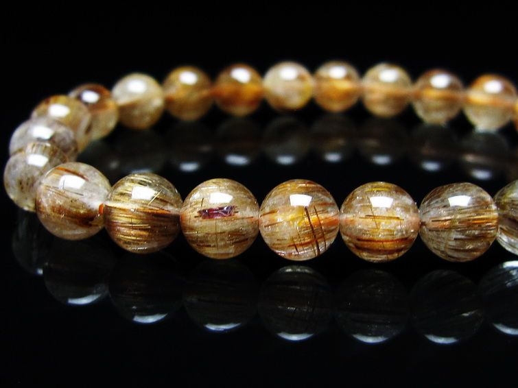 ゴールド タイチンルチルクォーツ ブレスレット 14mm 一点物 211-2417