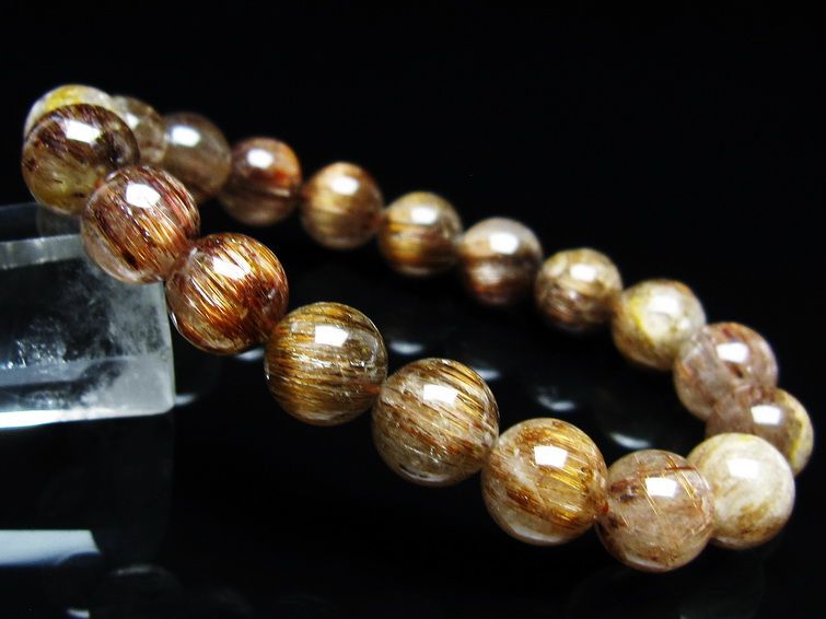 ゴールド タイチンルチルクォーツ ブレスレット 14mm 一点物 211-2417