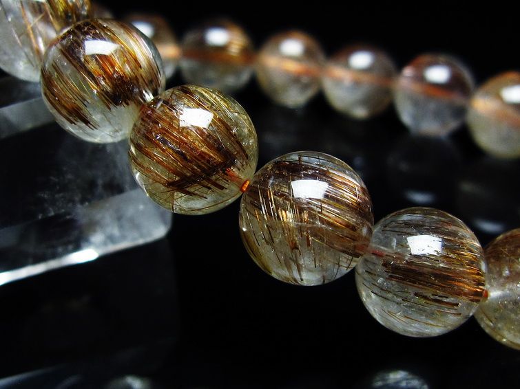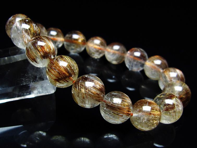 ゴールド タイチンルチルクォーツ ブレスレット 14mm 一点物 211-2417