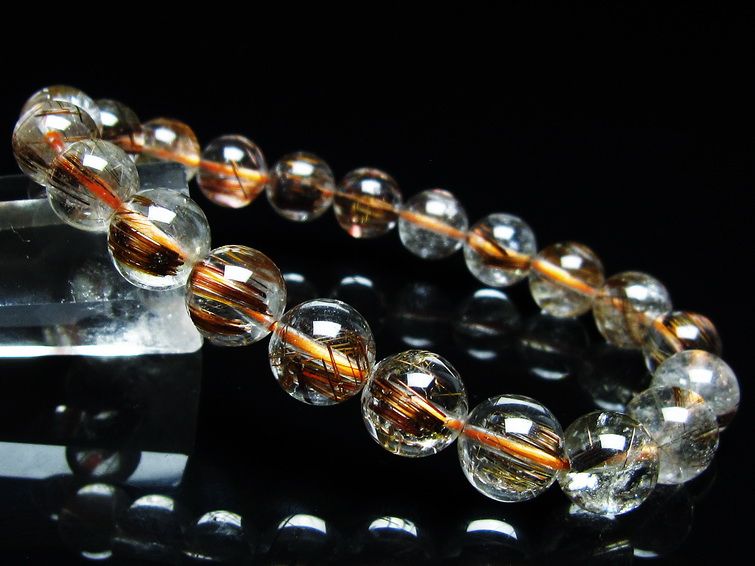 ゴールド タイチンルチルクォーツ ブレスレット 14mm 一点物 211-2417