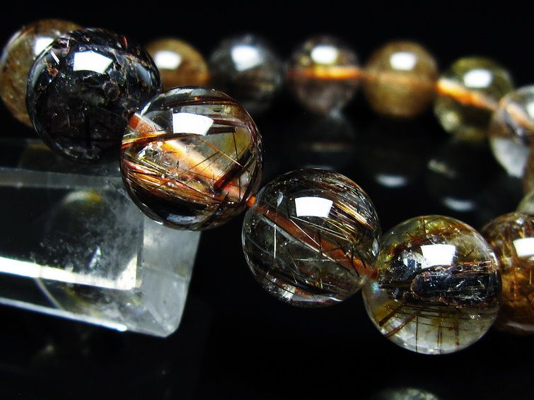 ゴールド タイチンルチルクォーツ ブレスレット 14mm 一点物 211-2417
