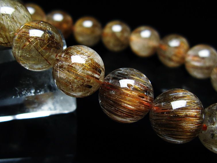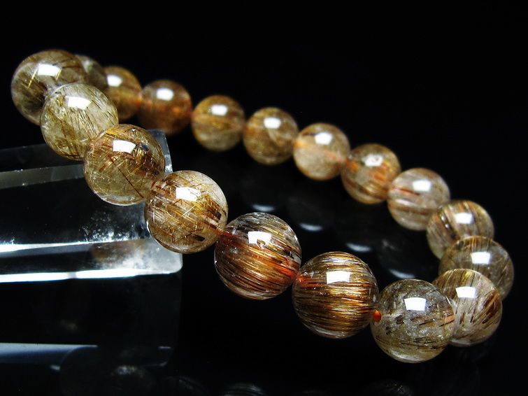 ゴールド タイチンルチルクォーツ ブレスレット 14mm 一点物 211-2417