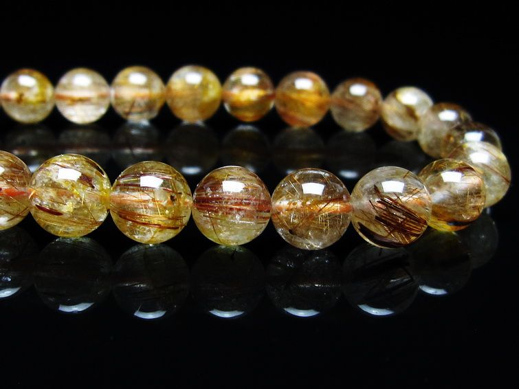 ゴールド タイチンルチルクォーツ ブレスレット 14mm 一点物 211-2417