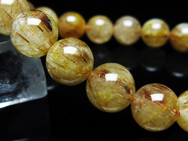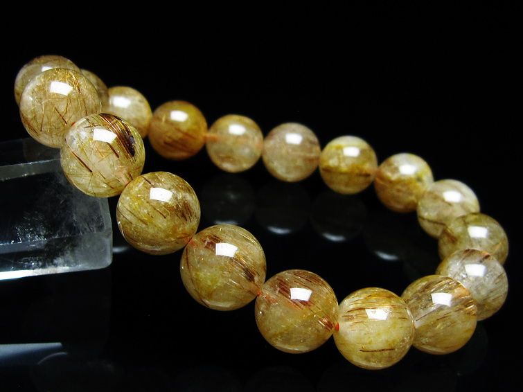 ゴールド タイチンルチルクォーツ ブレスレット 14mm 一点物 211-2417