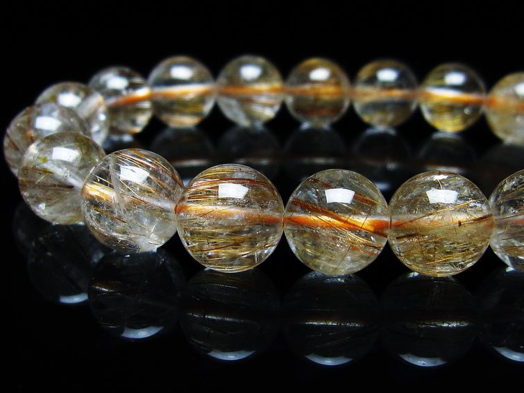 ゴールド タイチンルチルクォーツ ブレスレット 14mm 一点物 211-2417