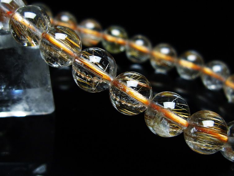 ゴールド タイチンルチルクォーツ ブレスレット 14mm 一点物 211-2417