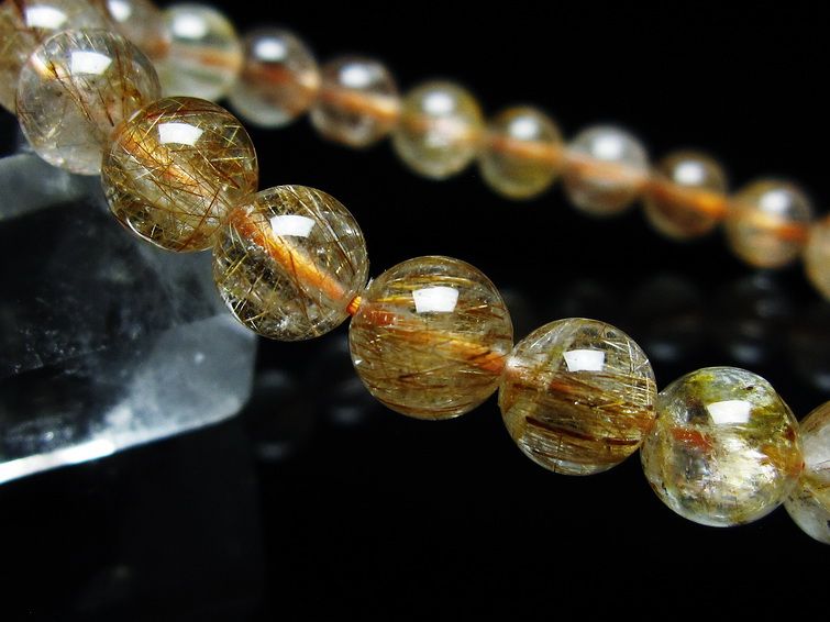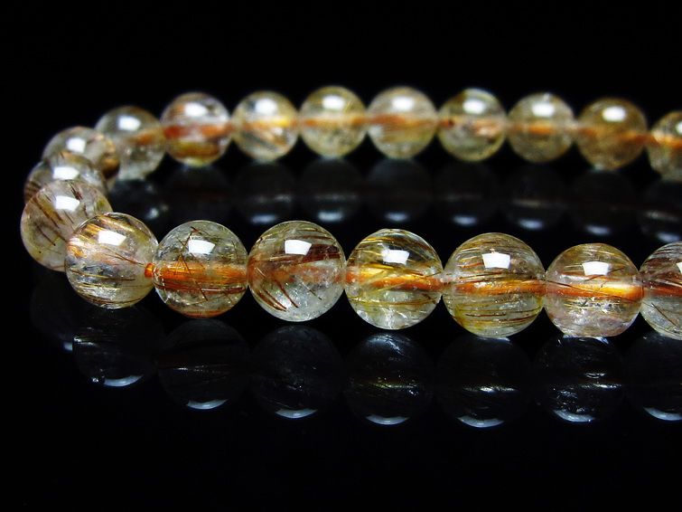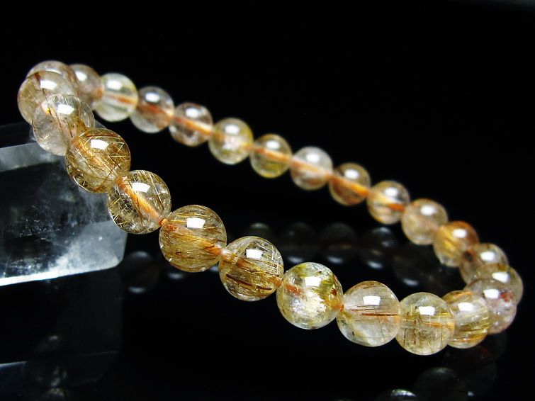 ゴールド タイチンルチルクォーツ ブレスレット 14mm 一点物 211-2417