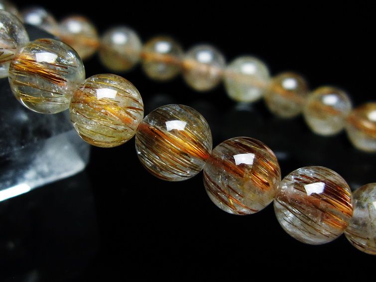ゴールド タイチンルチルクォーツ ブレスレット 14mm 一点物 211-2417