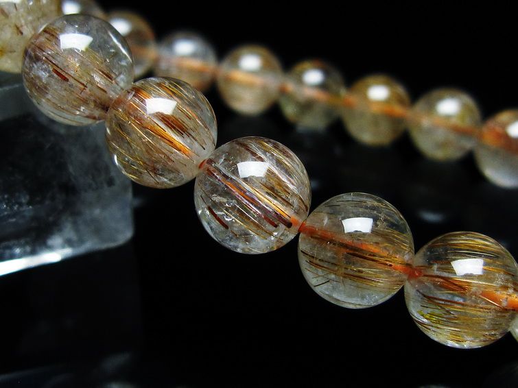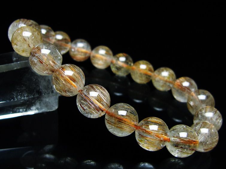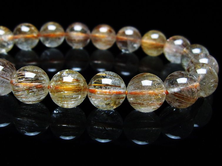 ゴールド タイチンルチルクォーツ ブレスレット 14mm 一点物 211-2417