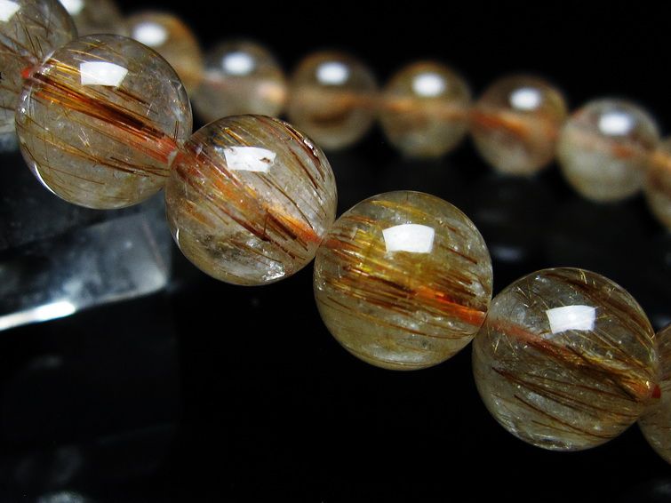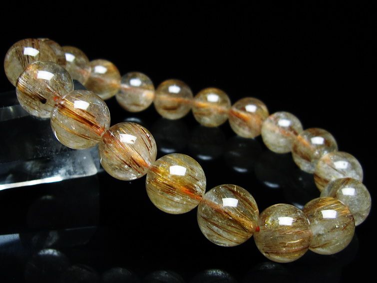 ゴールド タイチンルチルクォーツ ブレスレット 14mm 一点物 211-2417