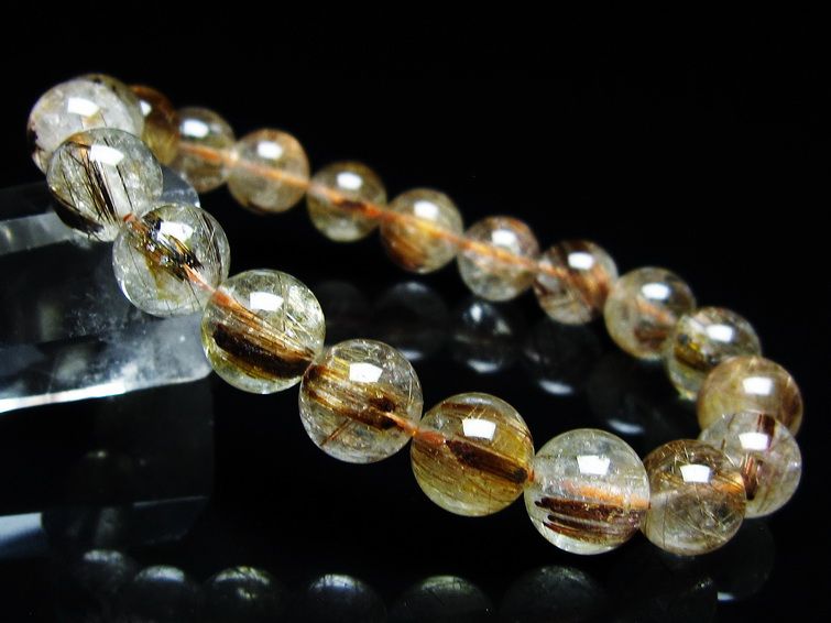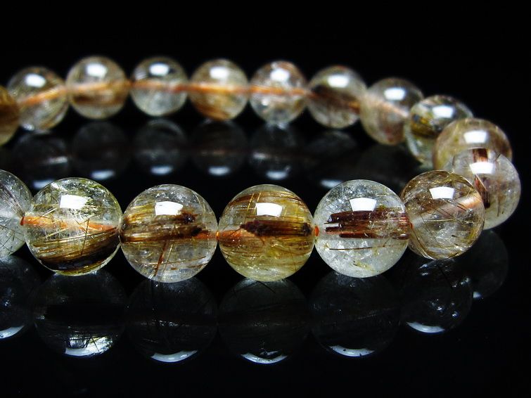 ゴールド タイチンルチルクォーツ ブレスレット 14mm 一点物 211-2417