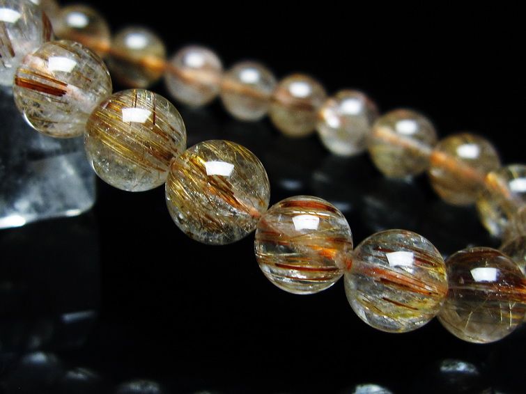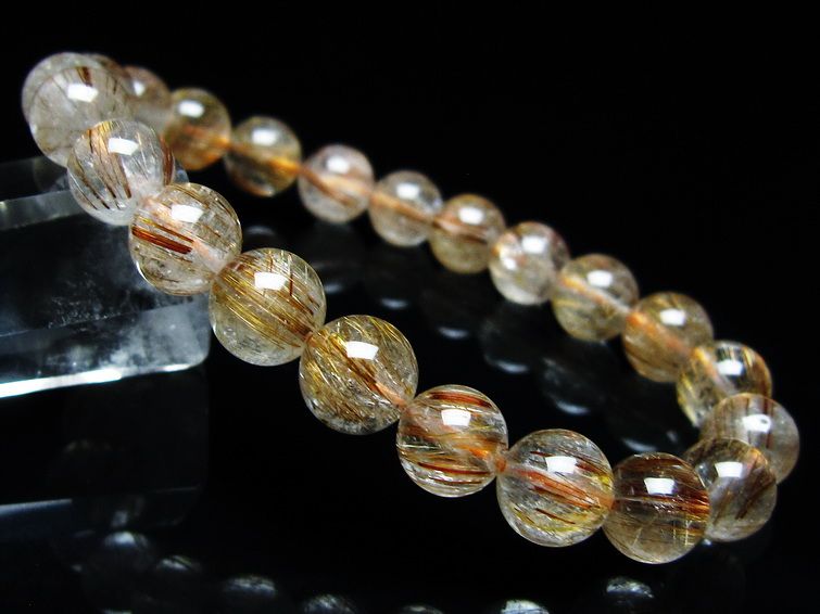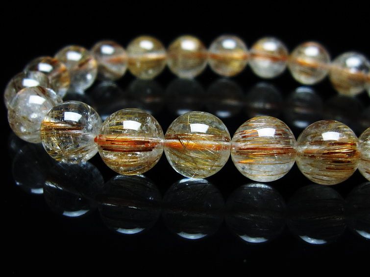 ゴールド タイチンルチルクォーツ ブレスレット 14mm 一点物 211-2417