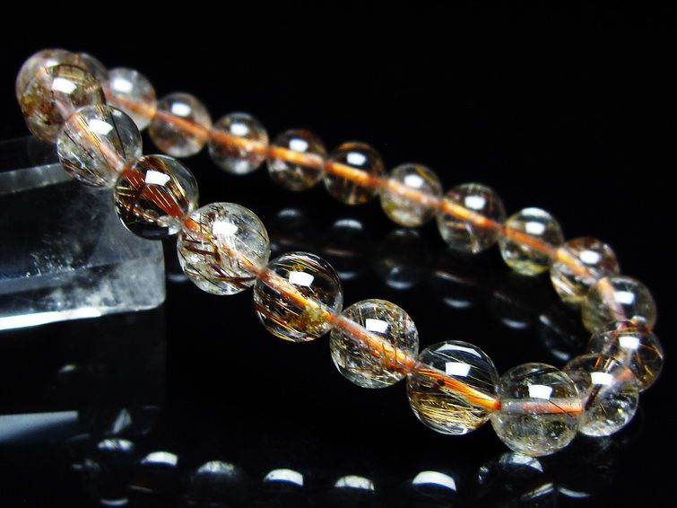 ゴールド タイチンルチルクォーツ ブレスレット 14mm 一点物 211-2417
