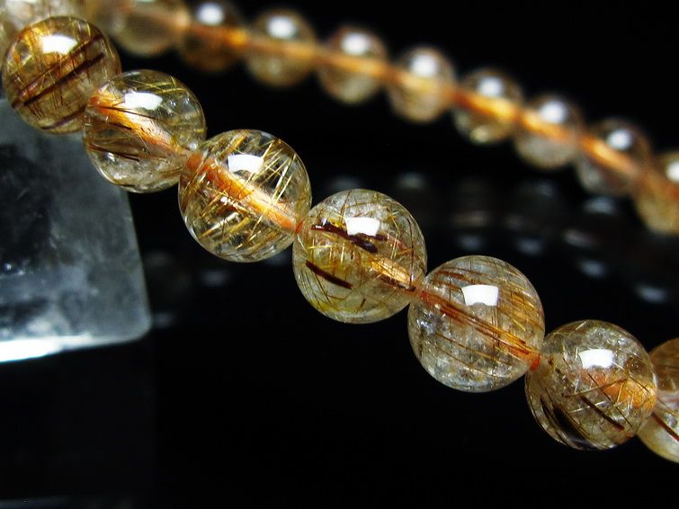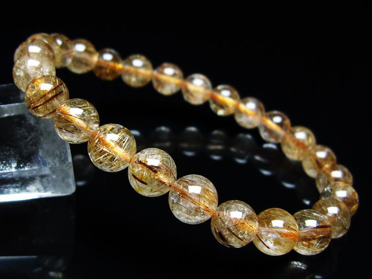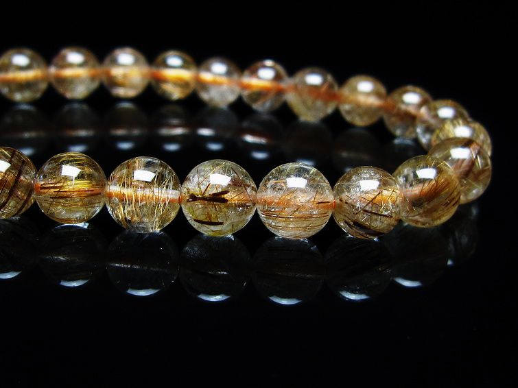 ゴールド タイチンルチルクォーツ ブレスレット 14mm 一点物 211-2417