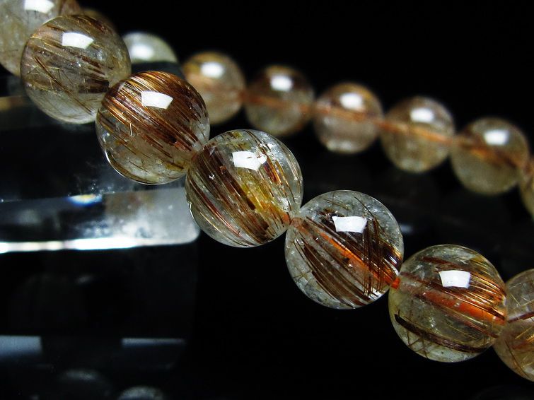 ゴールド タイチンルチルクォーツ ブレスレット 14mm 一点物 211-2417