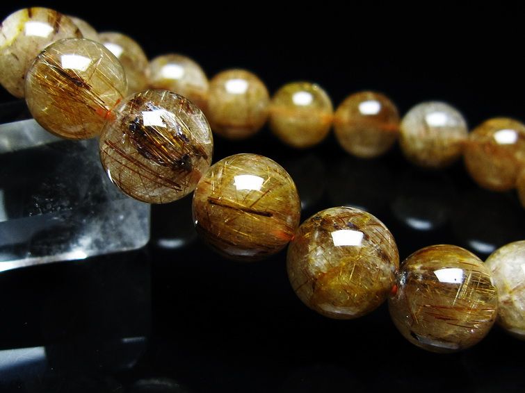 ゴールド タイチンルチルクォーツ ブレスレット 14mm 一点物 211-2417