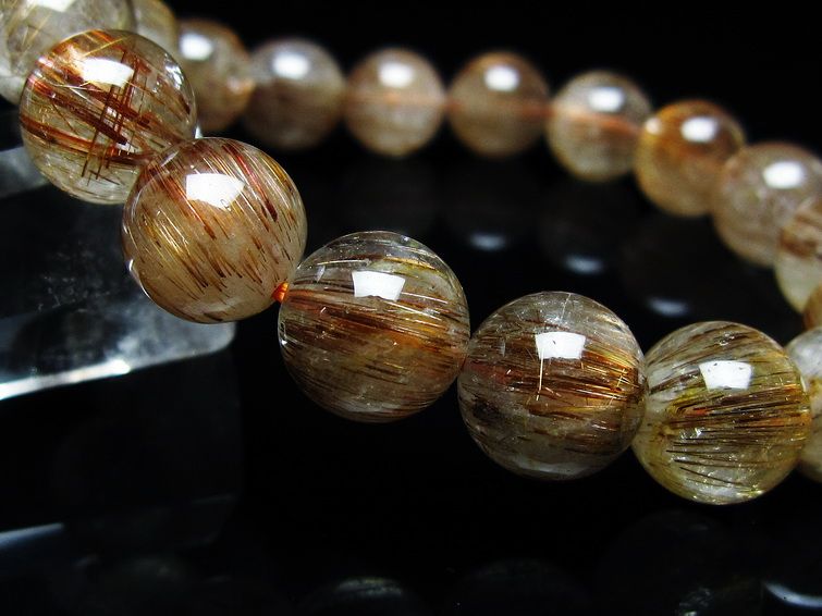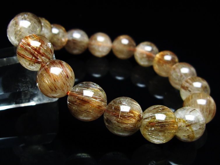 ゴールド タイチンルチルクォーツ ブレスレット 14mm 一点物 211-2417