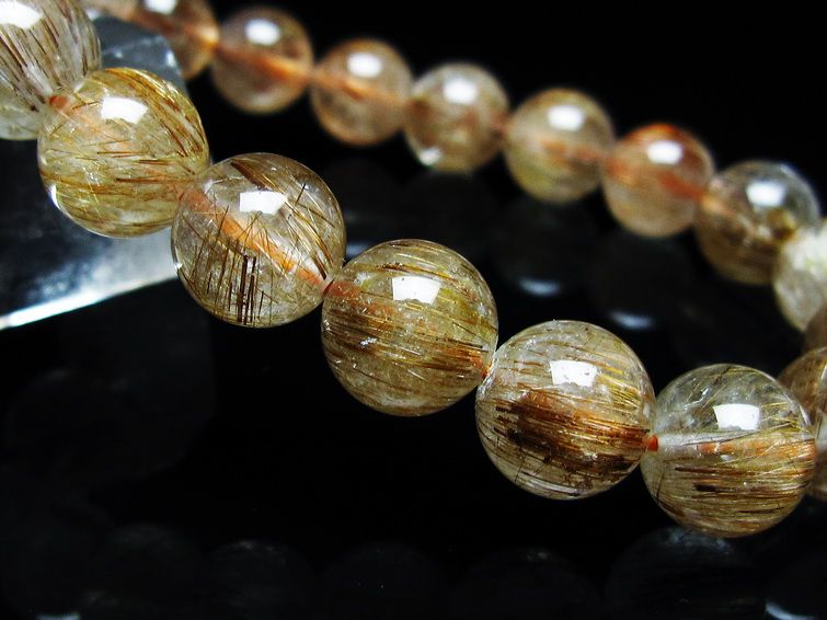 ゴールド タイチンルチルクォーツ ブレスレット 14mm 一点物 211-2417