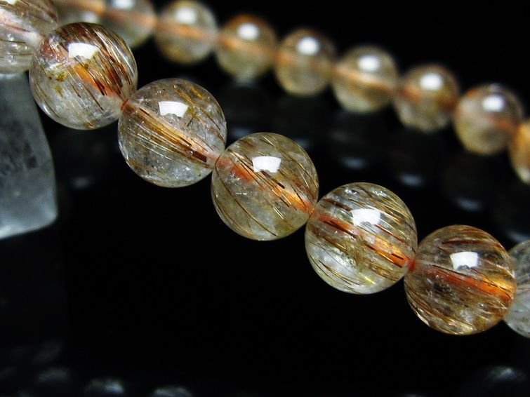 ゴールド タイチンルチルクォーツ ブレスレット 14mm 一点物 211-2417