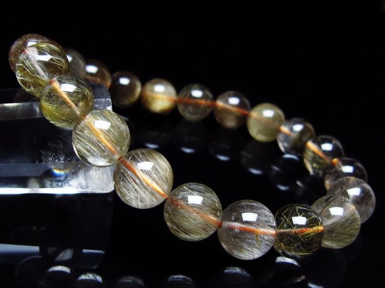 ゴールド タイチンルチルクォーツ ブレスレット 14mm 一点物 211-2417