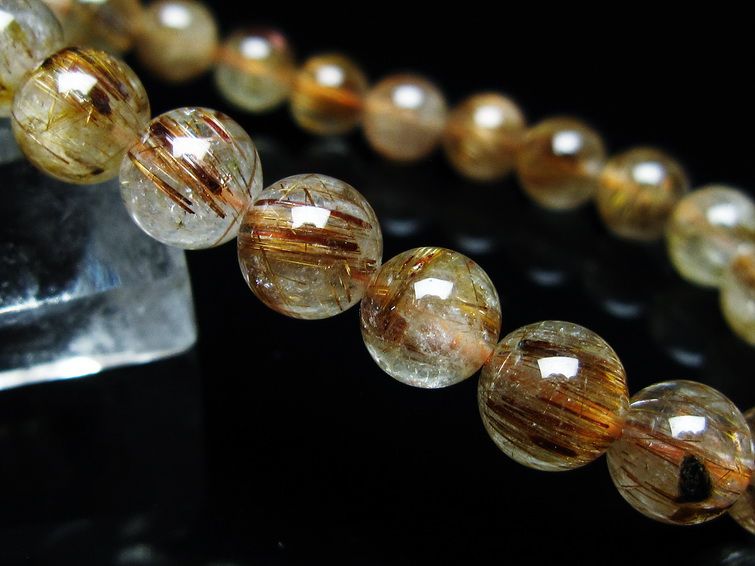 ゴールド タイチンルチルクォーツ ブレスレット 14mm 一点物 211-2417