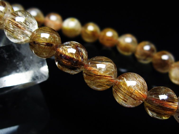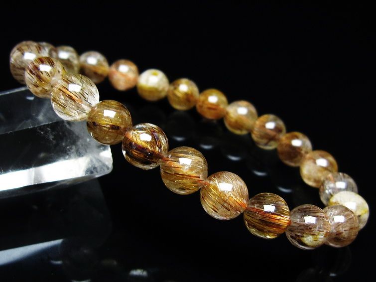 ゴールド タイチンルチルクォーツ ブレスレット 14mm 一点物 211-2417
