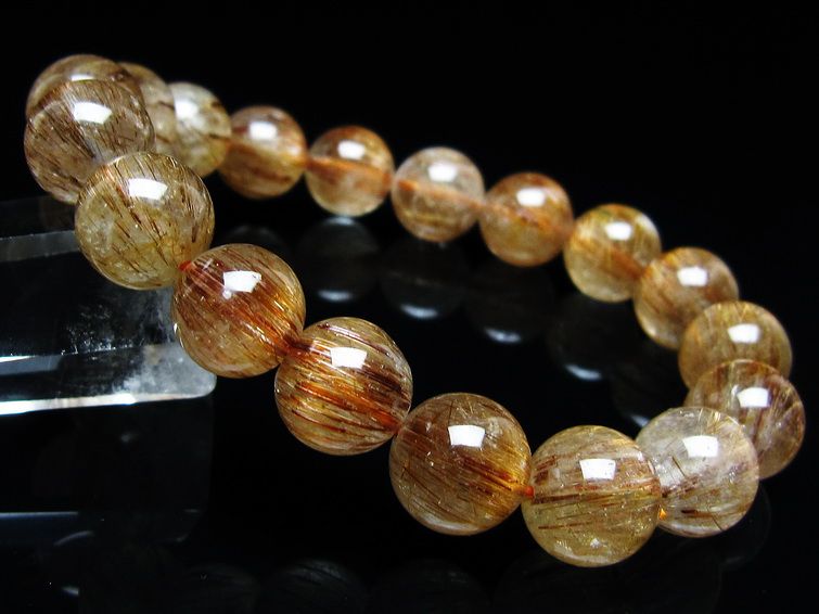ゴールド タイチンルチルクォーツ ブレスレット 14mm 一点物 211-2417